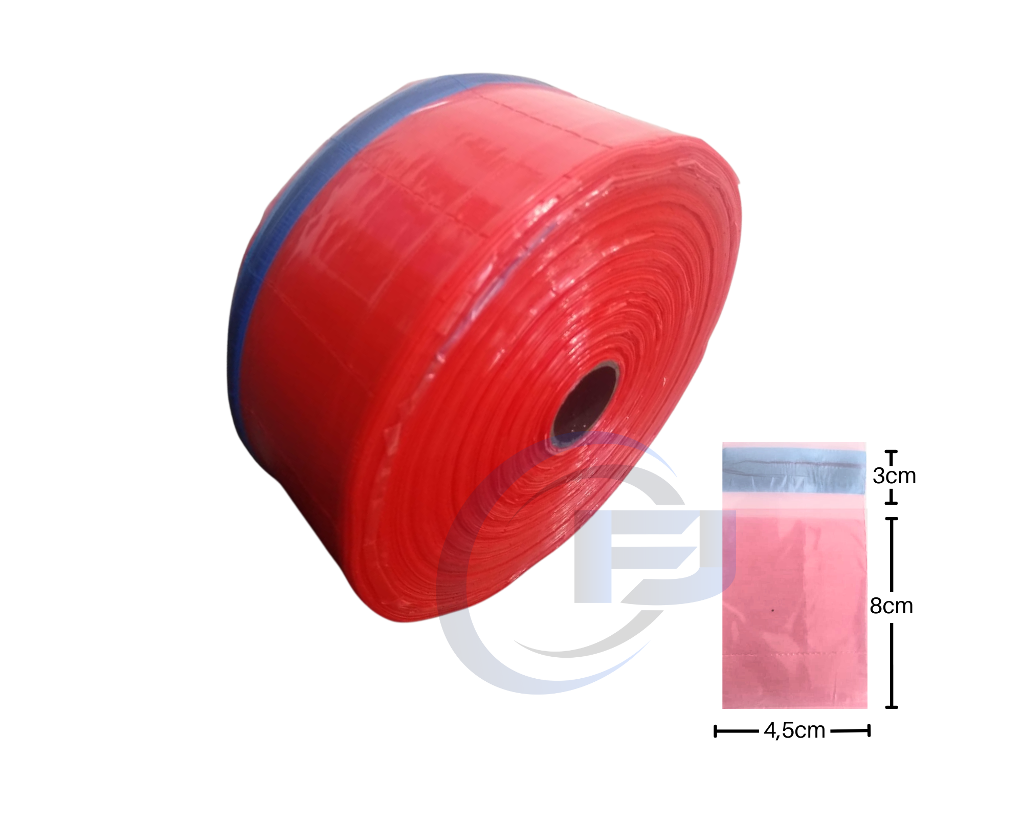 Embalagem plástica 5x8 p/ unitarização de medicamentos, plastico VERMELHA, bobina com 5.000 sacos.