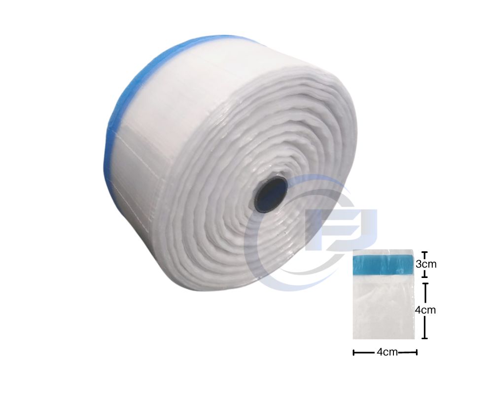 Embalagem plástica 4x4 p/ unitarização de medicamentos, plastico TRANSPARENTE, bobina com 10.000 sacos.