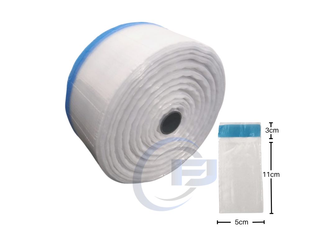 Embalagem plástica 5x11 p/ unitarização de medicamentos, plastico TRANSPARENTE, bobina com 5.000 sacos.